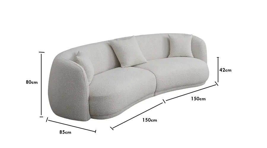 Con líneas curvas suaves, acabado textil tipo bouclé, asiento profundo y espumas de alta densidad, este sofá combina confort y estilo contemporáneo. Es perfecto para departamentos modernos, salas minimalistas y proyectos de interiorismo donde se busque un toque elegante y orgánico.