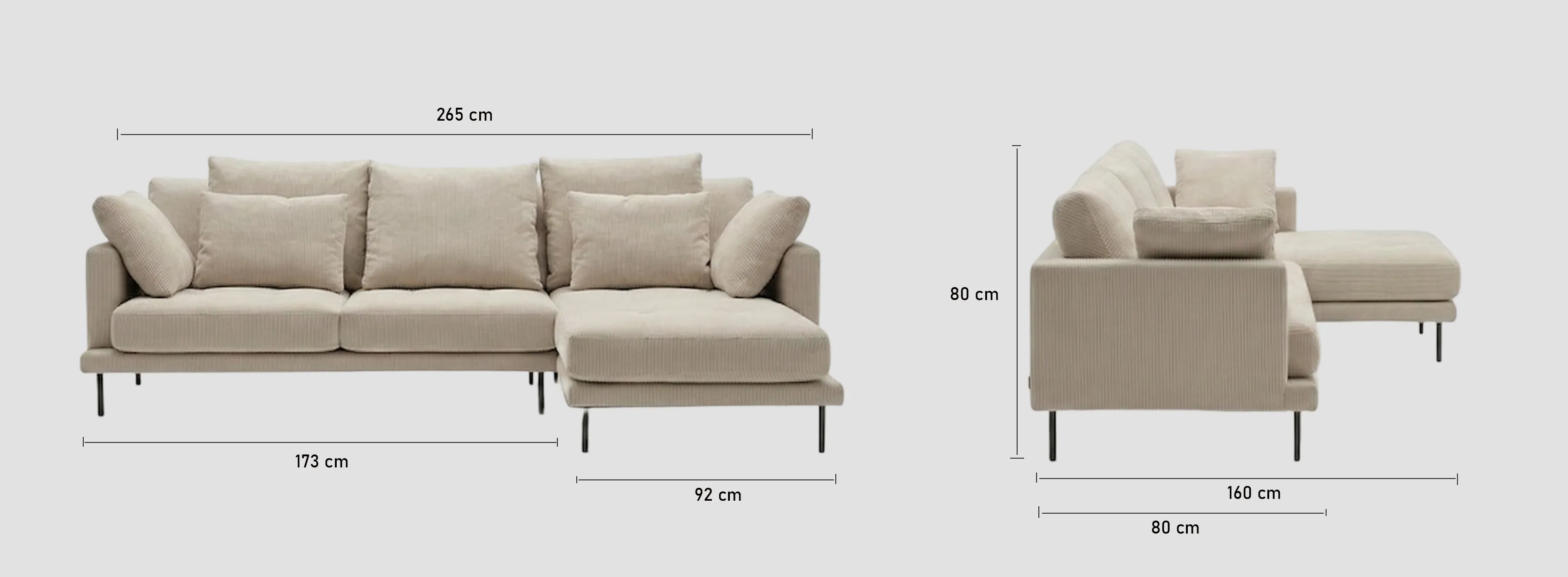 | Diseño Versátil | Su configuración con chaise longue permite un descanso total sin sacrificar el orden visual. |